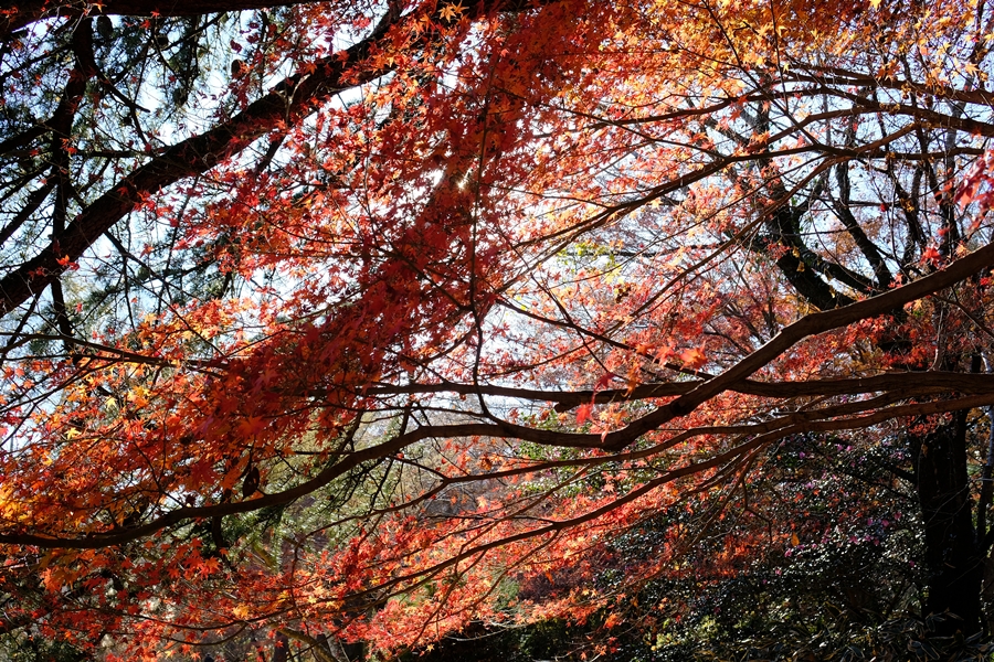 真っ盛りと言ってもいい紅葉と火山のコントラストを楽しめた。