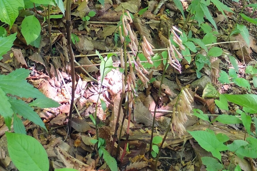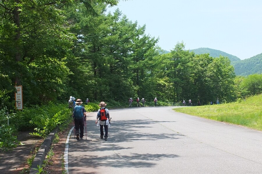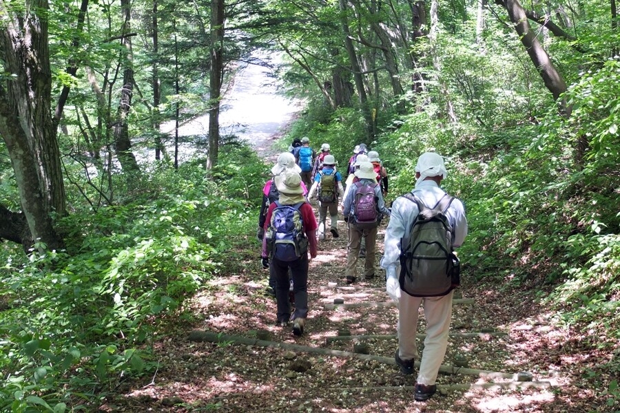 登山ルートは木立の中を歩きます。風が涼しく感じます。