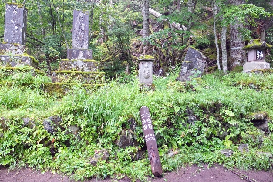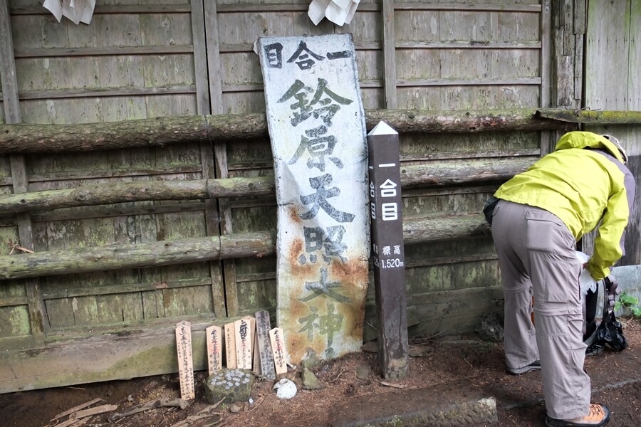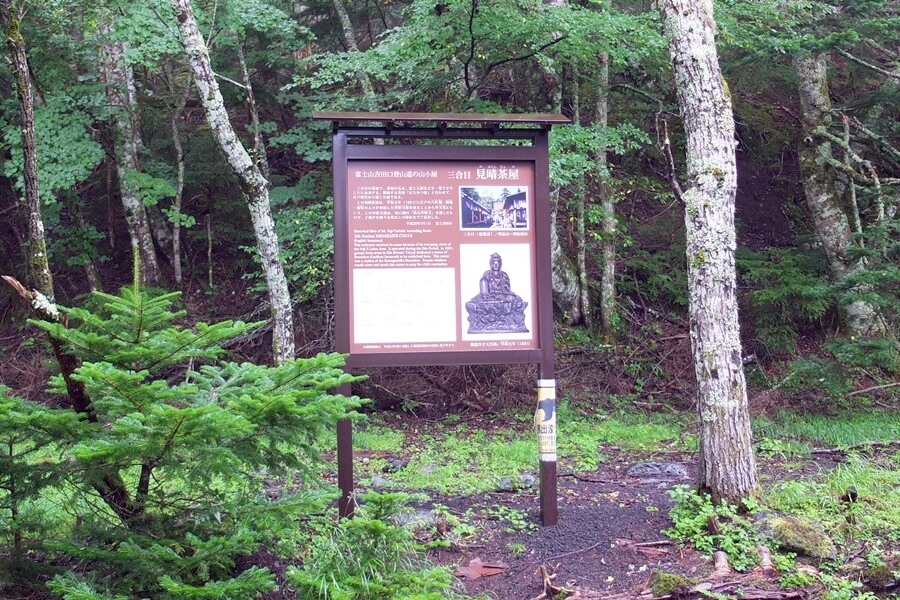 区切りごとに昔の富士講の跡や神社跡などが残っていて歴史を感じながら登る道です。
