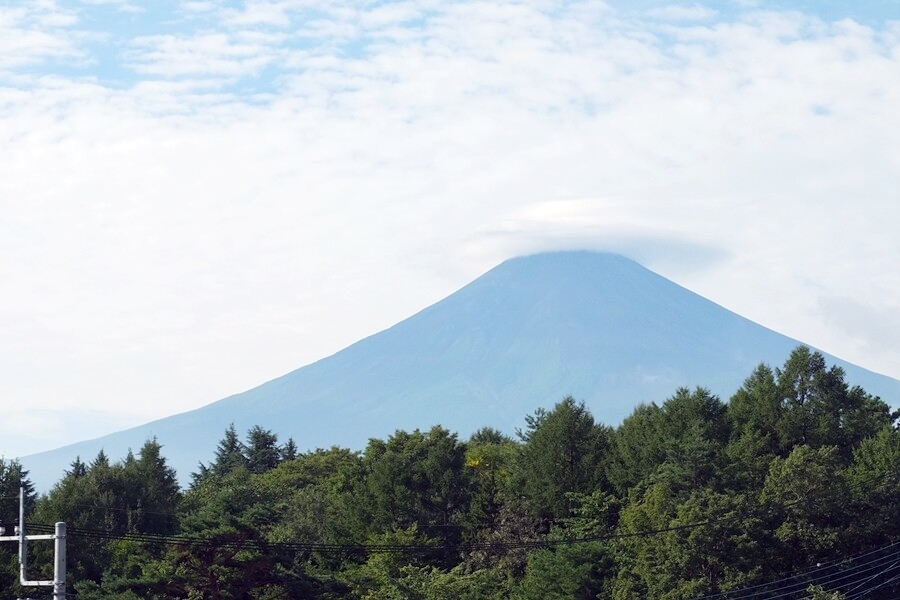 中央高速の河口湖に近づくと雲の帽子をかぶった富士山を見ることが出来ました。