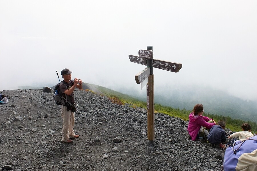 宝永山と御殿庭への分岐点へ、ガスが時々上がってきて視界が遮られることがあります。