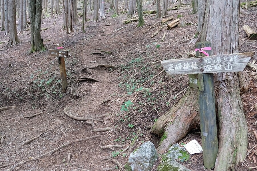 雲取山への道と奥社・妙法ケ岳への分岐通過10:18分