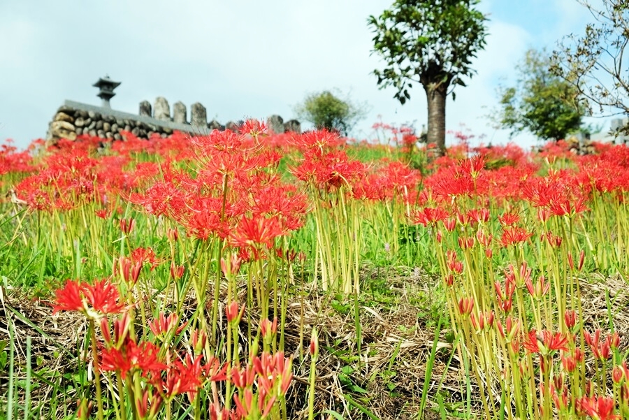 巾着田から日和田山の登山口までの間にもたくさんの花が道端から見る事が出来る 。