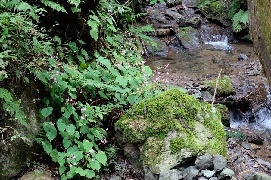 途中の沢沿いにもシュウカイドウが沢山咲いていた。