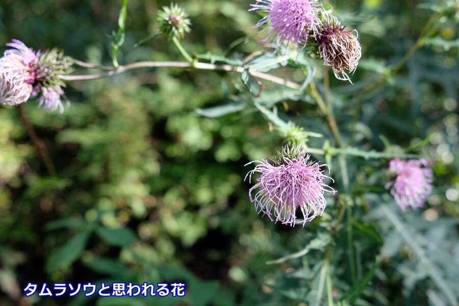 登山口からずっと沿道に咲いていた、アザミかタムラソウか迷う花