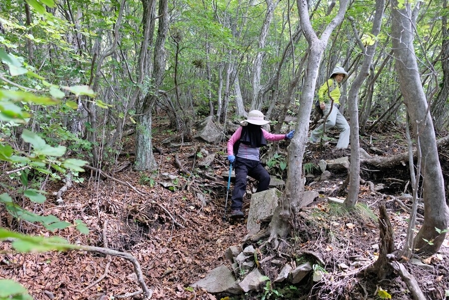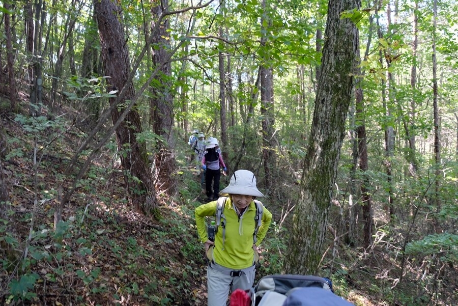 序盤は岩の多い歩きにくい道だが、すぐ林間の緩い登りになる。