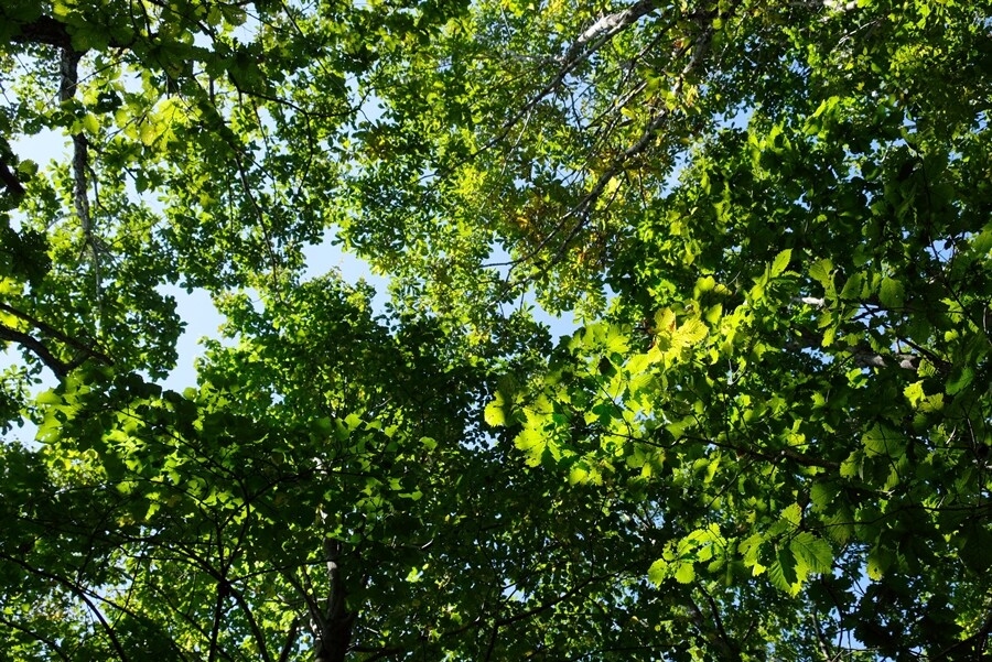 給水休憩で上を見上げると、日差しに輝いた緑の葉が綺麗だった。もうすぐ赤く変わるのだろう。
