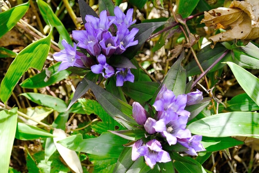 30分ほど眺めを満喫して下山。上り途中は笹に隠れて見えなかったリンドウの株を発見