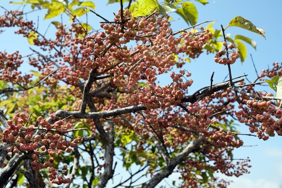 マユミの実をいっぱい付けた木が数本