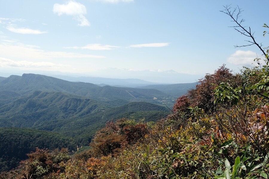 色づき始めた斜面と山の遠景