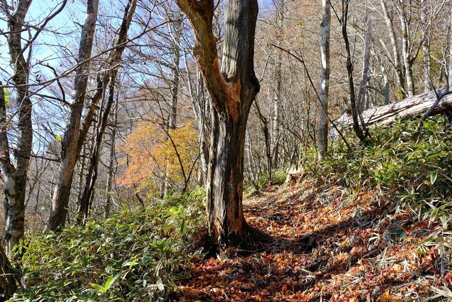 急登を降りるとき、老女二人の登山者がゆっくり下りるのをかわしながら、