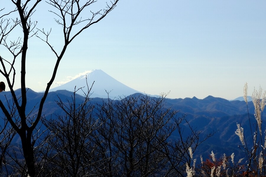急登が終わると視界が開けて逆光だが富士山が見えてきた。