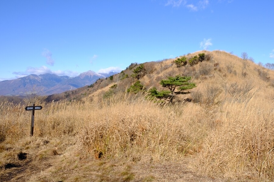後方には瑞牆山とその奥に金峰山の五丈岩が見える。