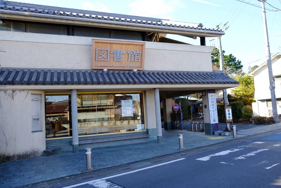 武蔵鶴の酒蔵を過ぎ、七峰ハイキングコースの看板のある道を右折してシックな図書館を左手に見る