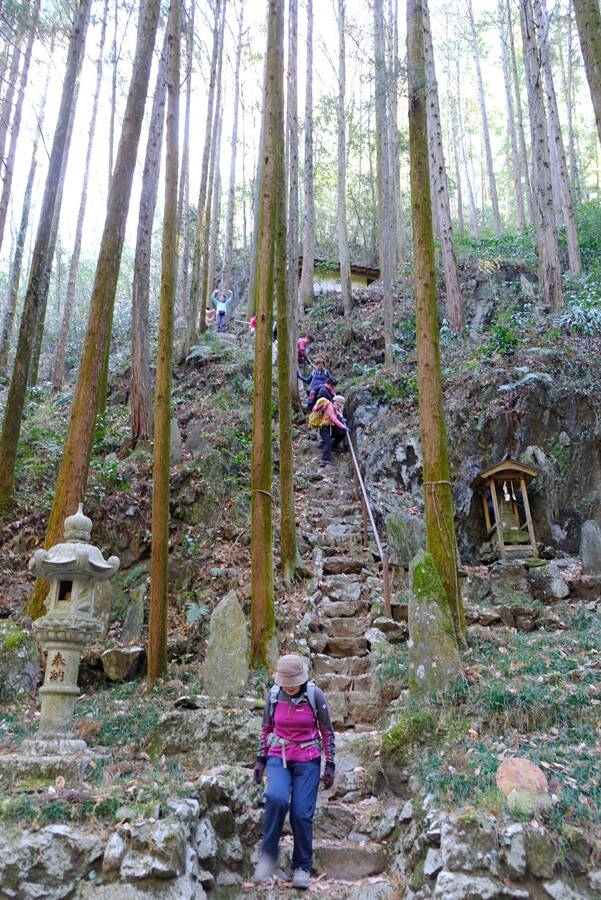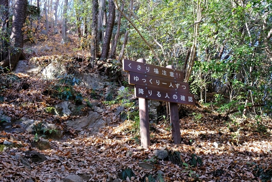 北向不動の先から本格的な山道となり、九十九折を過ぎると直登で後半くさり場が出てくる。