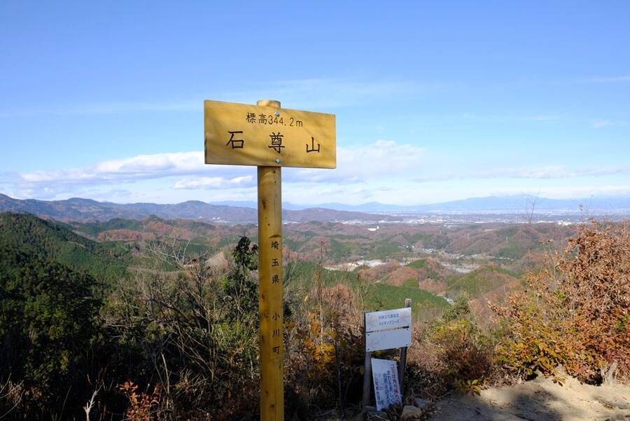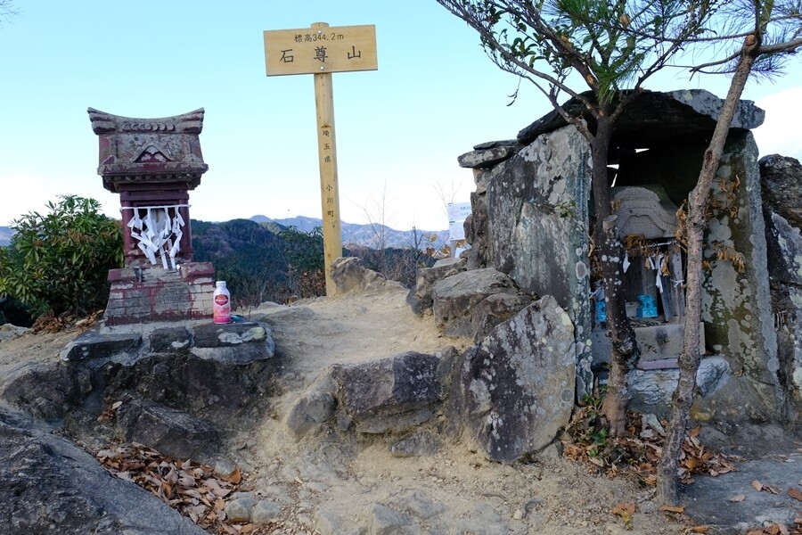 岩場を登りきると、石尊山(344.2m)に到着11:14分