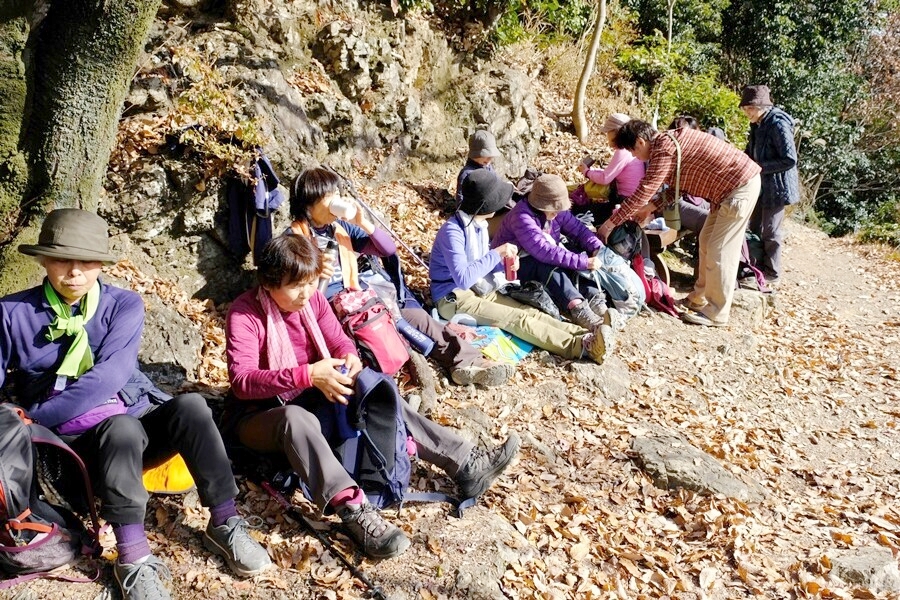 山頂のすぐ下の浅間神社が祭られている日溜りで昼食