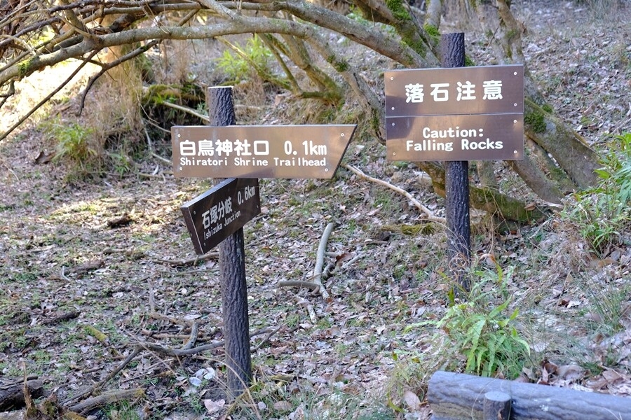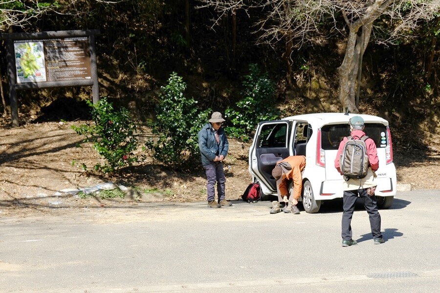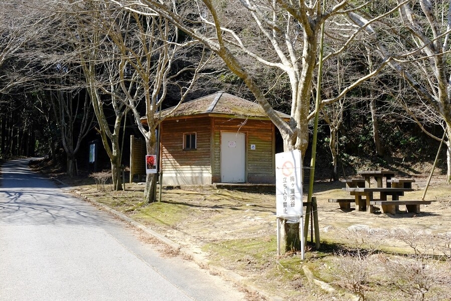 梅ケ瀬渓谷方面にトンネルを抜けて進んだところの駐車場は無料だったが、なんと梅ケ瀬渓谷通行止めの表示あり、しょうがないので周回を諦めてほぼ頂上近くの休憩舎駐車場まで車で上がってしまうことにした。