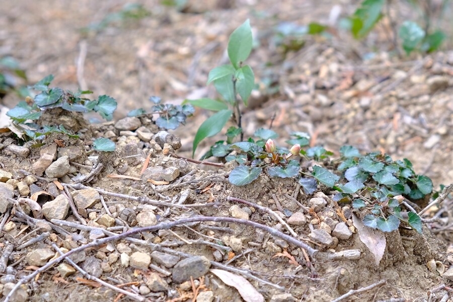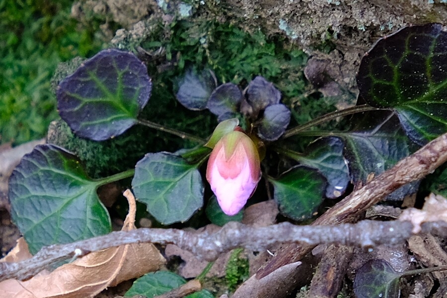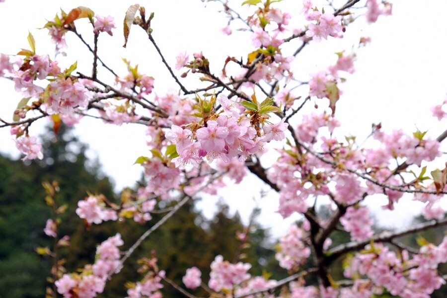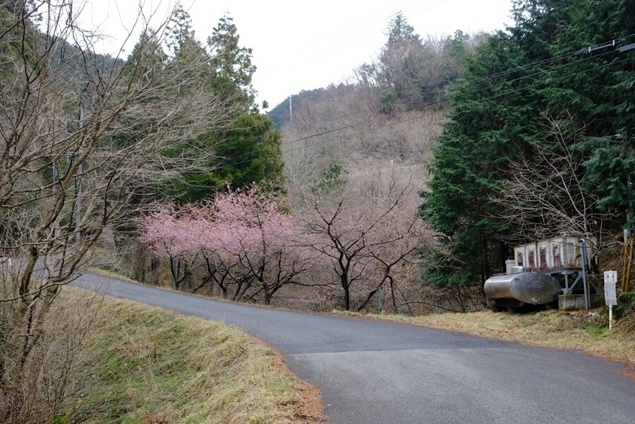顔降峠への分岐点の坂尻に早咲きの桜が咲いていた