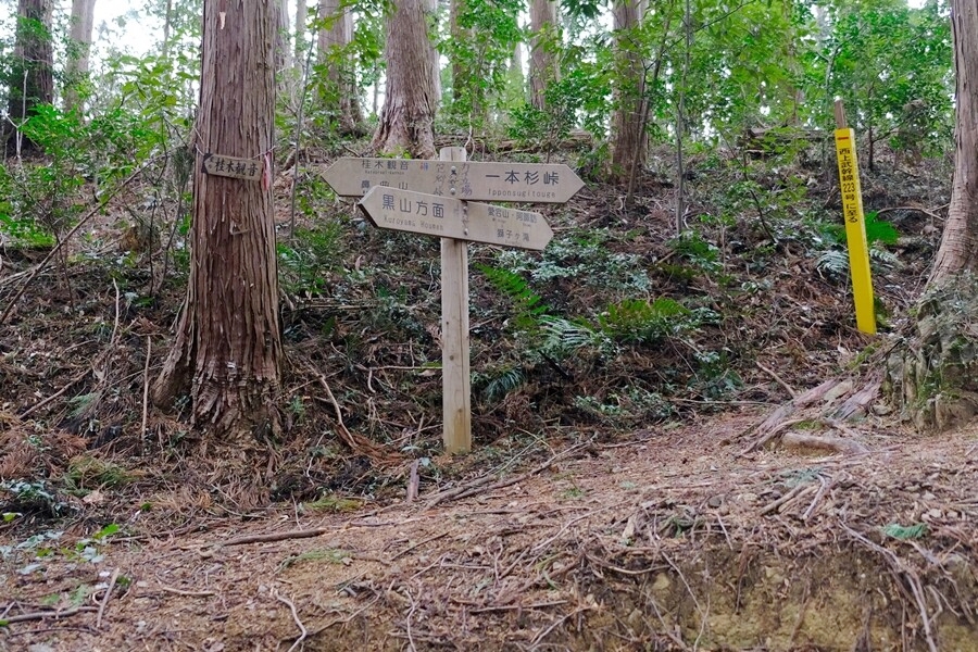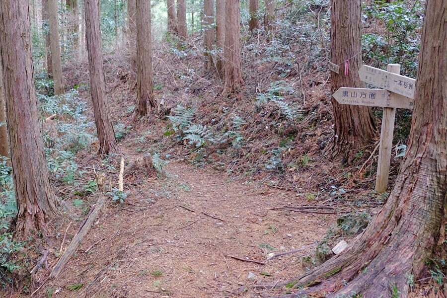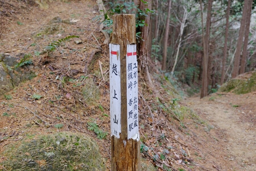 最初の登りを終えると歩きやすい道となり、越上山への分岐が出てきた。12:30分