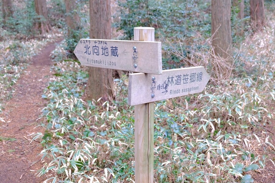 更に進むと林道笹郷線方面と北向地蔵方面との分岐が出てくる。