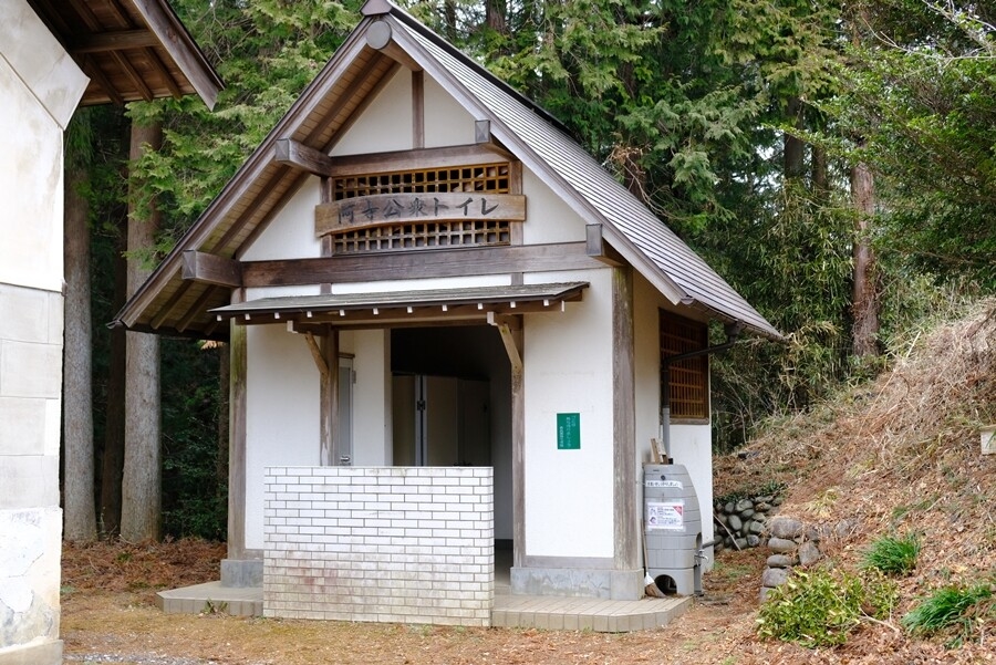 と思ったらすぐ開けた所に出て、トイレがあった。