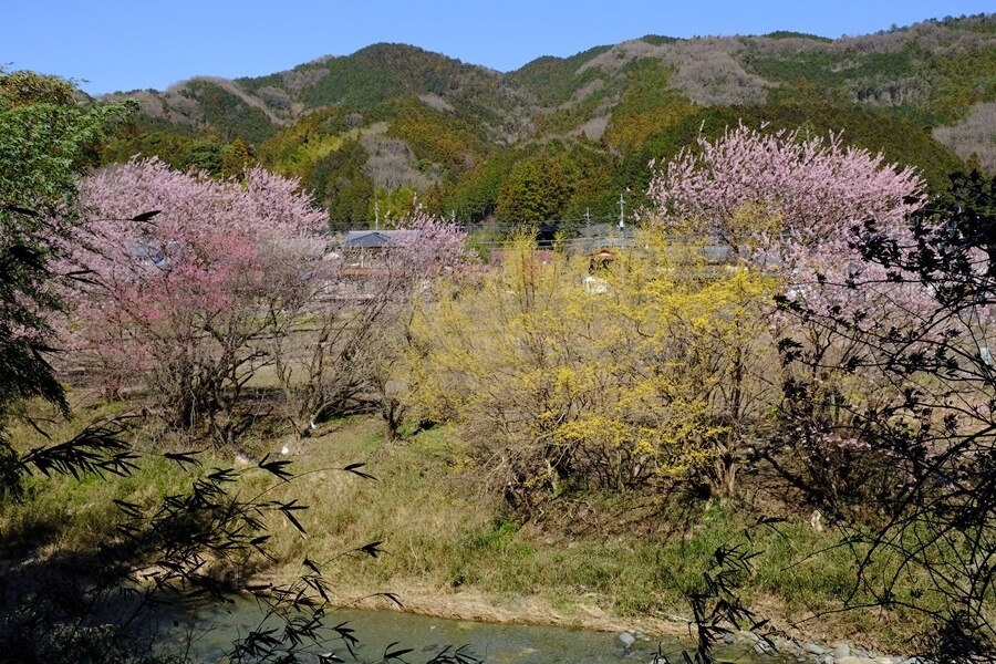 槻川沿いにピンクと黄色の共演