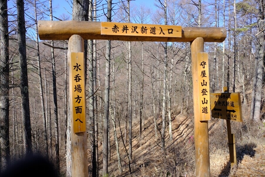 林道と並行して歩いたり、合流したあとでこの入口が出てきた。(赤井沢新道)9:05分