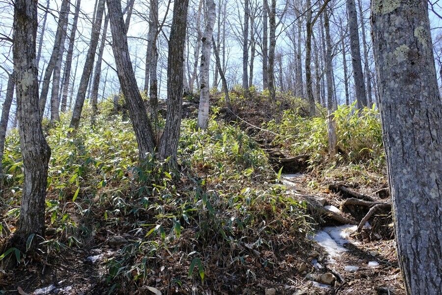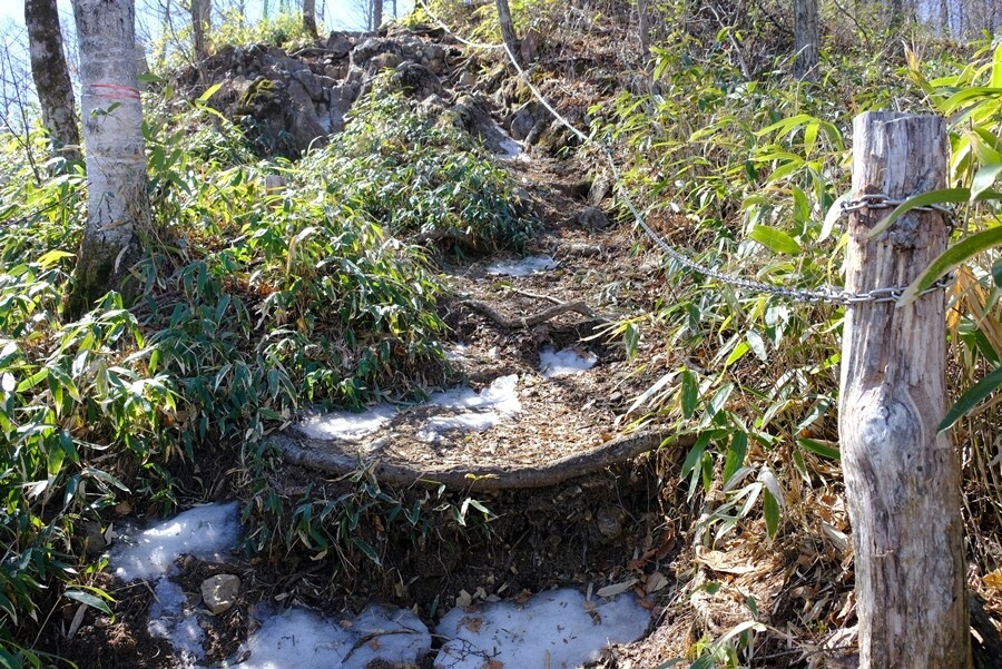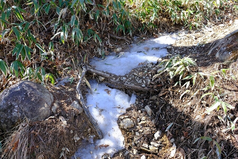 日影に雪が凍っている所が出てきた。(量は少ないのでアイゼン不要)