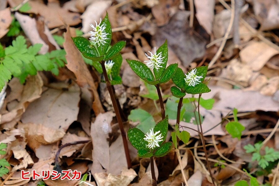 今年は季節の進み方が早いように感じた。いつもの場所にたくさんヒトリシズカが咲いていた。