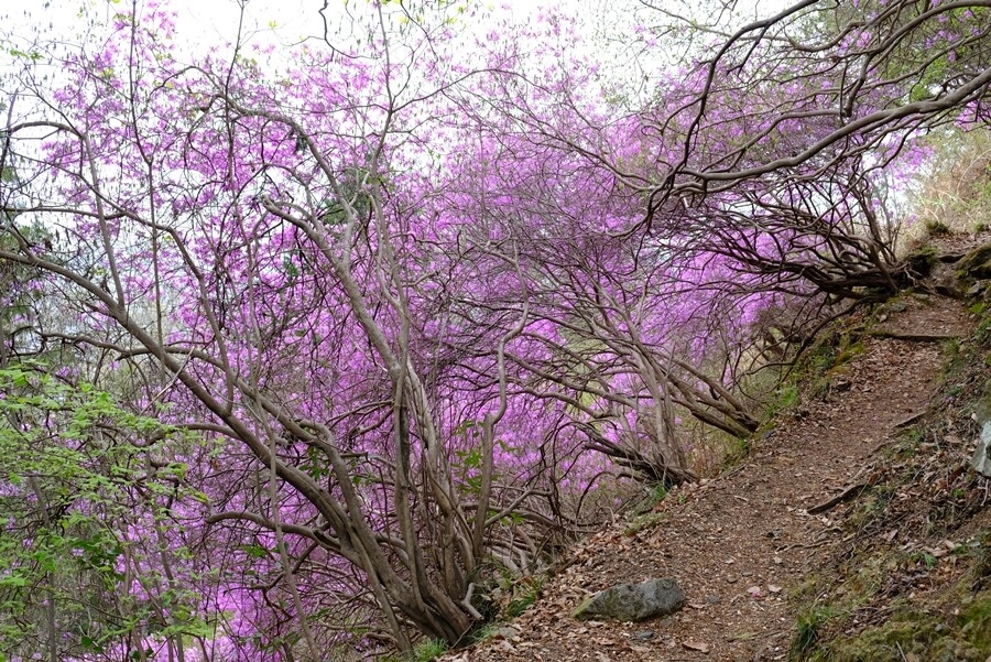 観音様手前のミツバツツジ(さっき下から見えた群生)