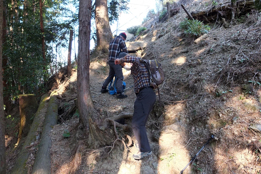 暑くなってきたので、衣服調整しますが、急坂の途中でした。