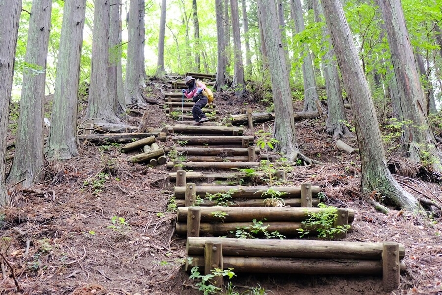山道に入る。沢沿いを進むがこのような仮設の橋が沢山あった。