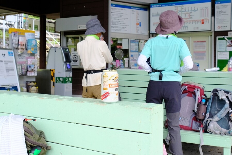 電車予定時刻の10分以上前に到着し、売店で冷たい飲み物ゲット!しみる。