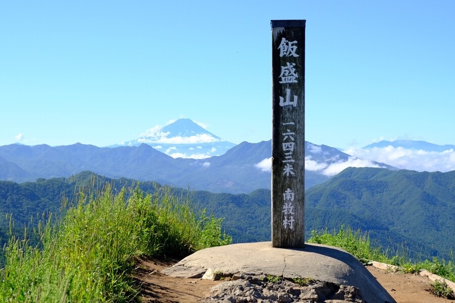 飯盛山標識とバックに富士山