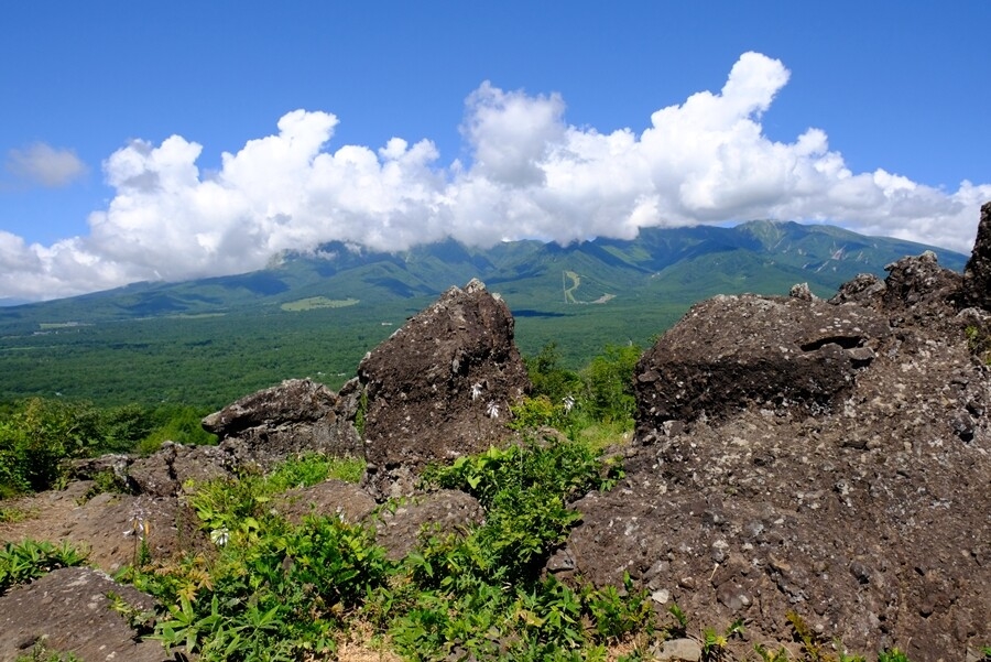 しし岩と八ヶ岳(すっかり雲に隠れた)