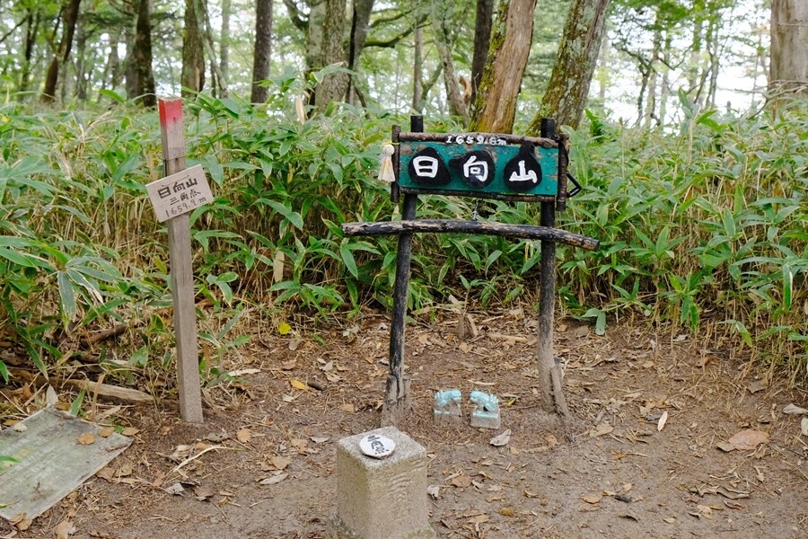 9時35分三角点に着いて、雁が腹には40分に到着。ガスで真っ白