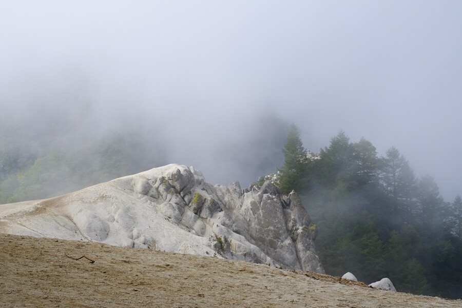 何とか景色が見えないかとしばらく粘ってみた。すると少しづつガスが流れた。