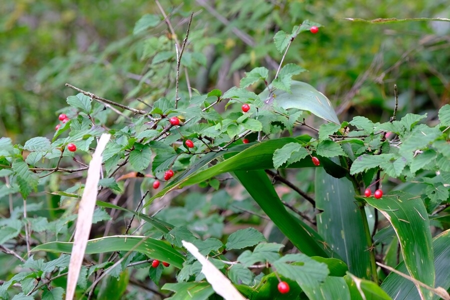 10時15分下山開始。途中で赤い実の木があった。何の木かな?