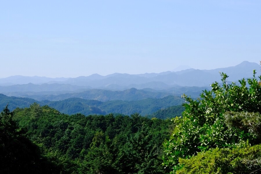 右端の大岳山から少し左奥に薄っすらと富士山が確認できた。