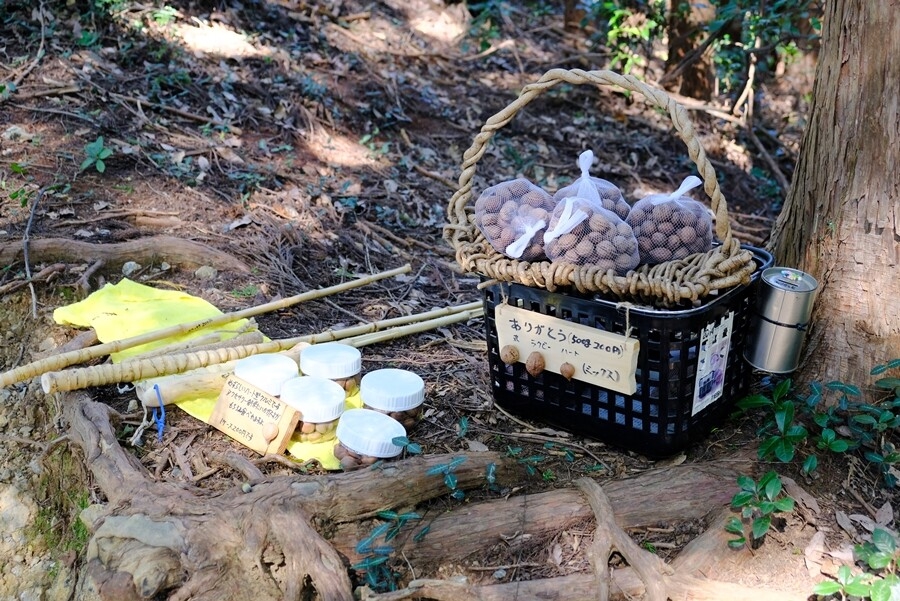 切通し手前でハート型のクルミを売っていた。