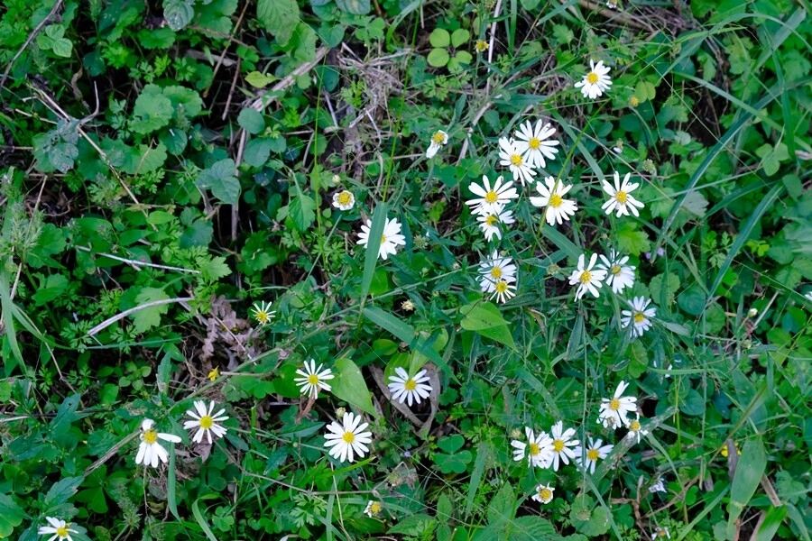 鎌北湖に向けて下山。途中で花をシロヨメナかな