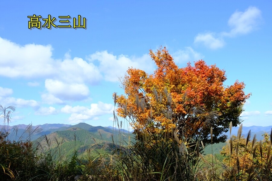 高水三山への分岐点、山ガール3人組と抜いたり抜かれたりしながら進む。