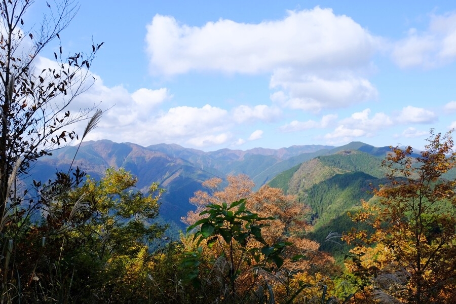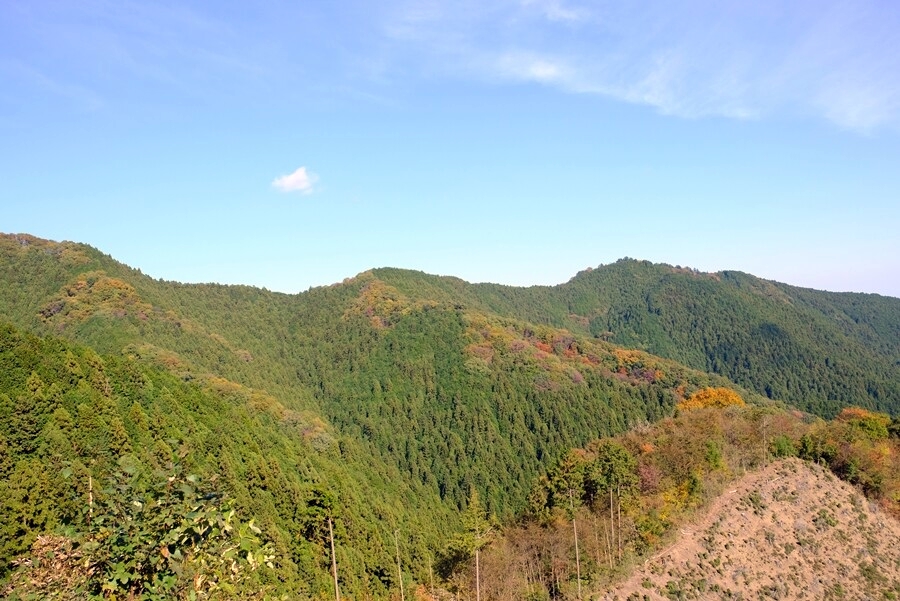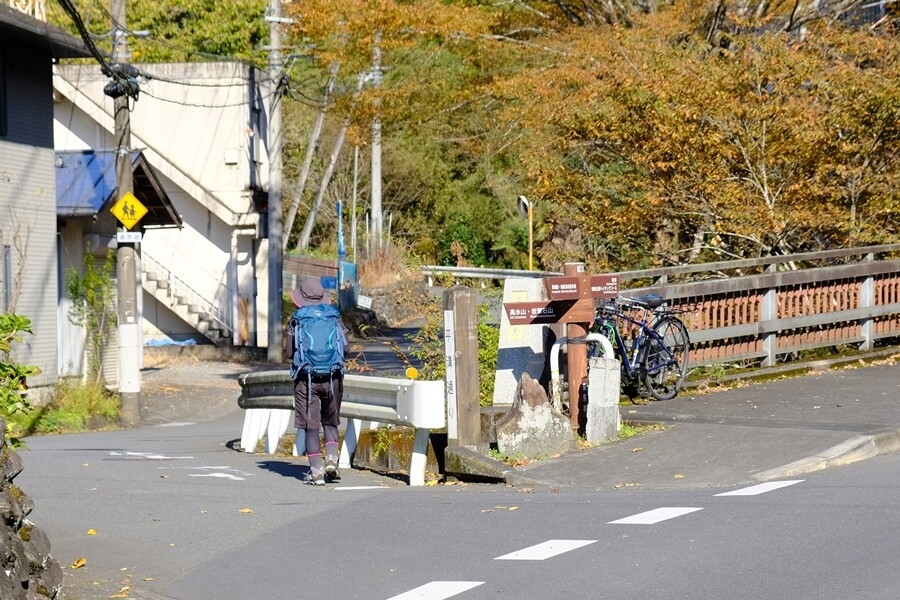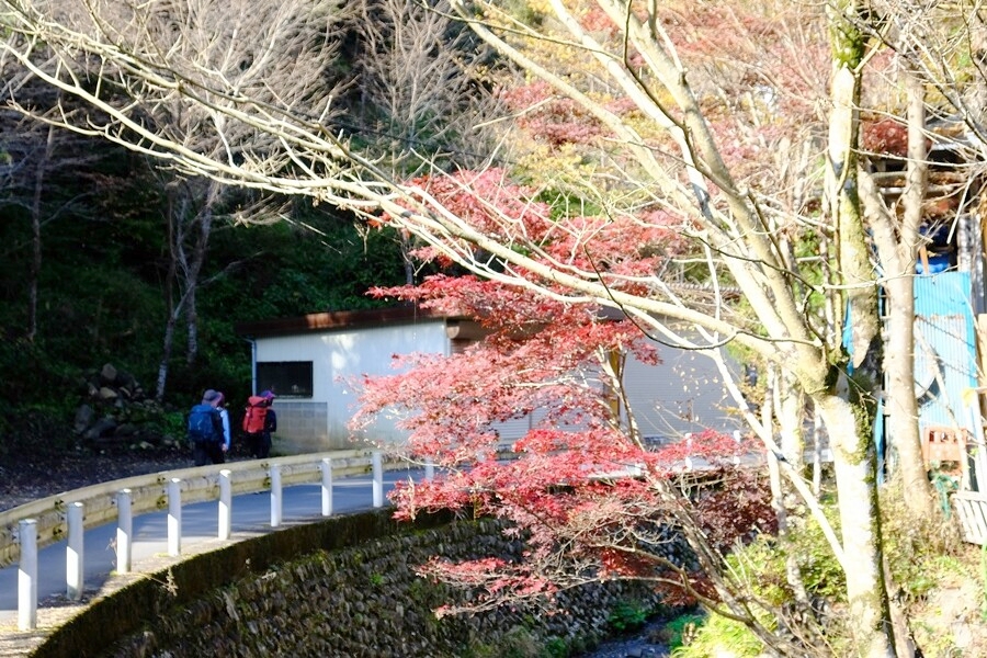 登山口までの舗装道路歩き。色ずく場所を探す。
