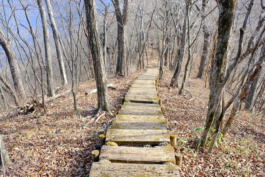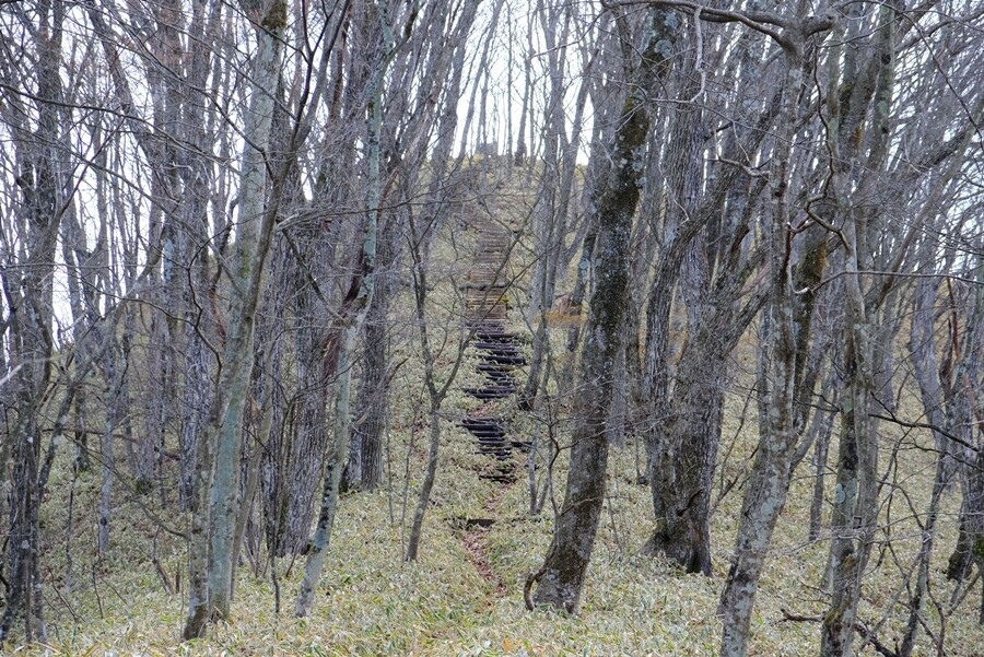 ここからの下りも相変わらず急な木製階段が