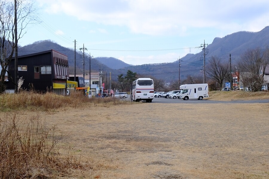 湖畔の宿記念公園駐車場から榛名湖と榛名富士