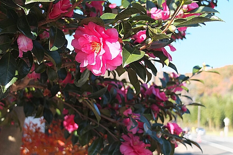 沿道にサザンカ