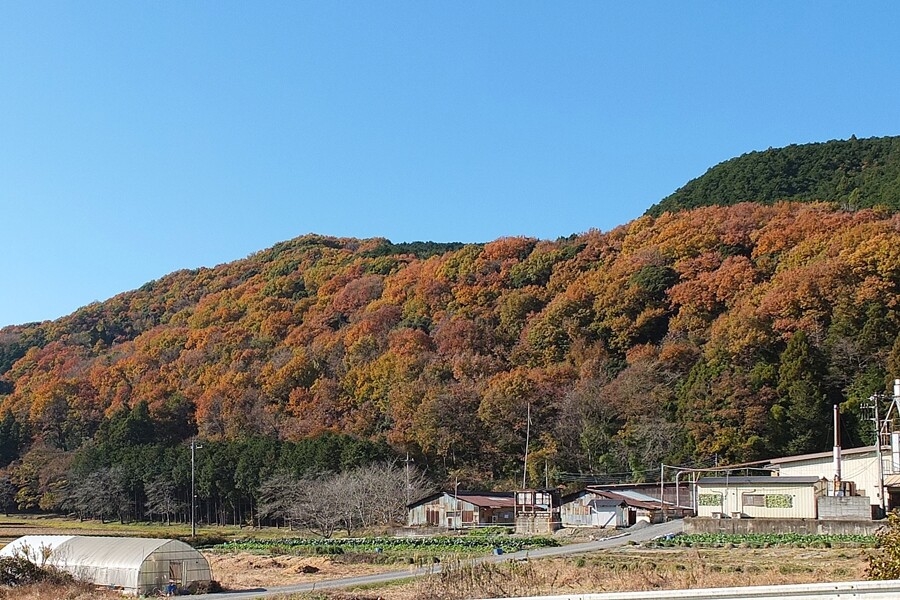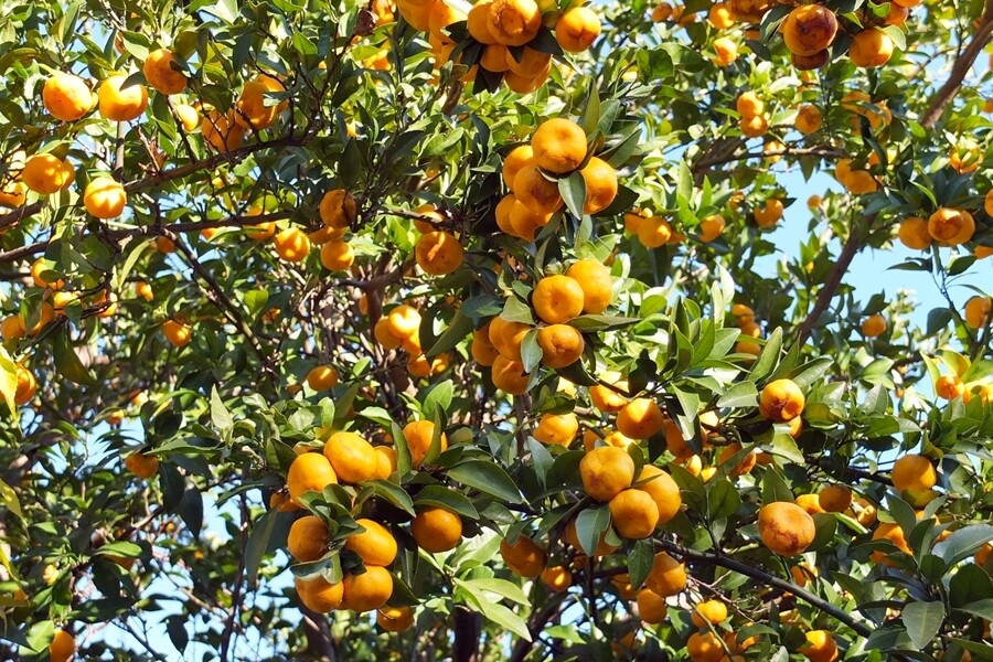 紅葉を堪能して武蔵嵐山駅に向かう。途中にはおいしそうなみかん