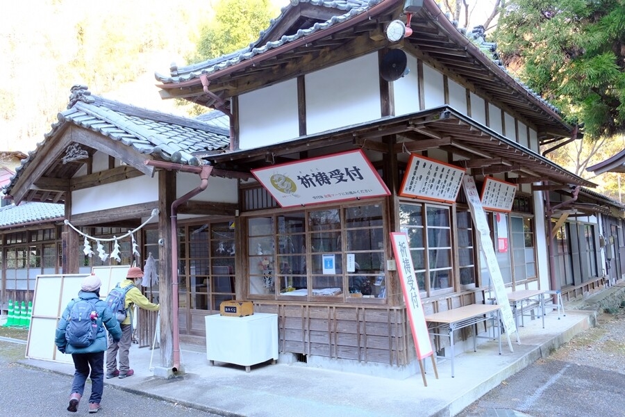 駐車場から真っ直ぐ進むと社務所らしい建物があり案内パンフレットも置いてあった。