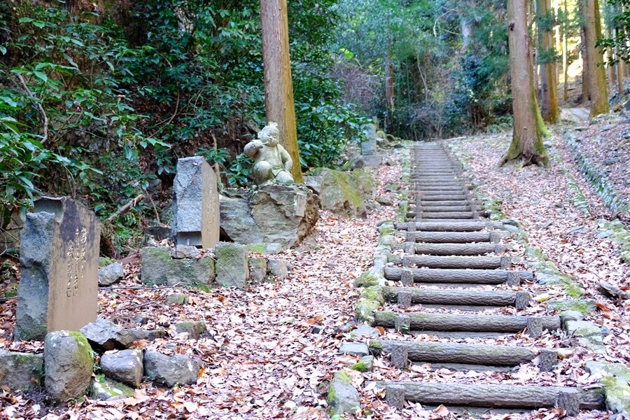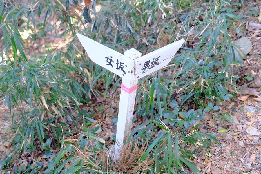 普通の山道を行くと男坂と女坂分岐。
